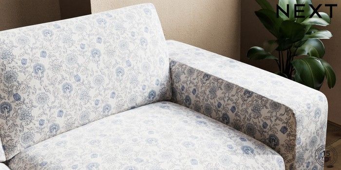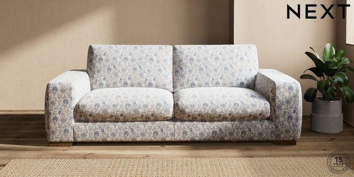 7.3.1 Buy Houghton Deep Sit 3 Seater Sofa Relaxed Linen Look Print Woodblock Floral Blue Large Square Angle - Mid from the Next UK online shop Click here to use our accessible website