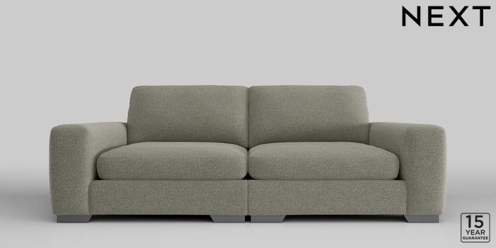 6.12.1 Buy Houghton Deep Sit 4 Seater Sofa Chunky Marl Light Olive Green Large Square Angle - Gunmetal from the Next UK online shop Click here to use our accessible website