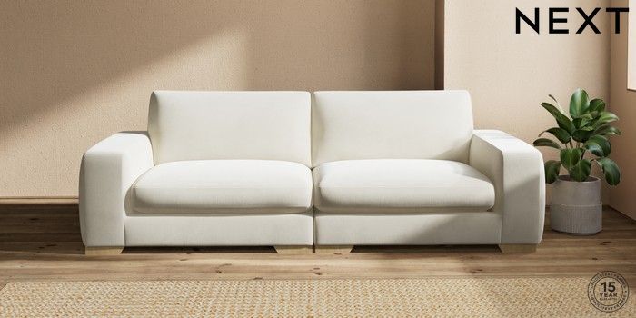 7.0.3 Buy Houghton Deep Sit 4 Seater Sofa Luxe Chenille Oyster Large Square Angle - Light from the Next UK online shop Click here to use our accessible website