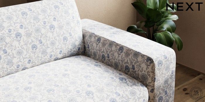 7.3.1 Buy Houghton Deep Sit 4 Seater Sofa Relaxed Linen Look Print Woodblock Floral Blue Large Square Angle - Chrome Metal from the Next UK online shop Click here to use our accessible website
