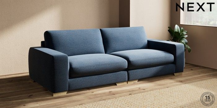 7.0.3 Buy Houghton Deep Sit 4 Seater Sofa Ripple Chenille Dark Blue Large Square Angle - Light from the Next UK online shop Click here to use our accessible website