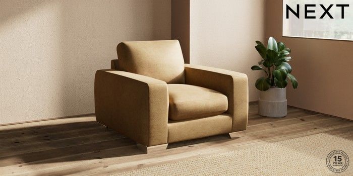 7.0.3 Buy Houghton Deep Sit Armchair Luxe Chenille Honey Yellow Large Square Angle - Chrome Metal from the Next UK online shop Click here to use our accessible website