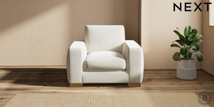 7.0.3 Buy Houghton Deep Sit Armchair Luxe Chenille Oyster Large Square Angle - Brushed Brass from the Next UK online shop Click here to use our accessible website
