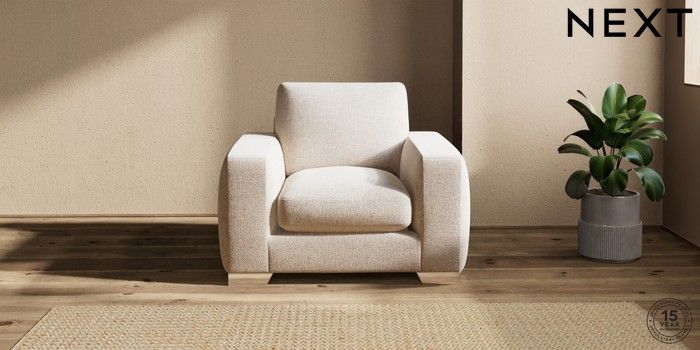 7.2.6 Buy Houghton Deep Sit Armchair Multi Weave Mid Natural Large Square Angle - Chrome Metal from the Next UK online shop Click here to use our accessible website