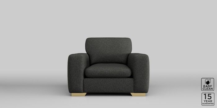 6.12.1 Buy Houghton Deep Sit Armchair Tweedy Blend Easy Clean Charcoal Grey Large Square Angle - Brushed Brass from the Next UK online shop Click here to use our accessible website