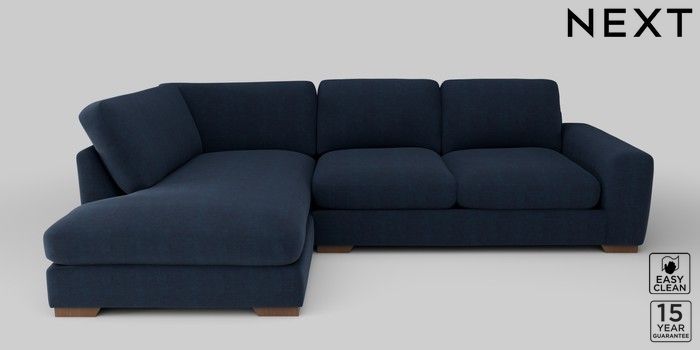 6.12.1 Buy Houghton Deep Sit Large Corner Chaise - Left Hand Fine Chenille Easy Clean Dark Navy Blue Large Square Angle - Mid from the Next UK online shop Click here to use our accessible website
