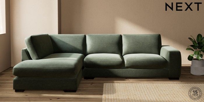 7.0.3 Buy Houghton Deep Sit Large Corner Chaise - Left Hand Luxe Chenille Mid Green Large Square Angle - Dark from the Next UK online shop Click here to use our accessible website