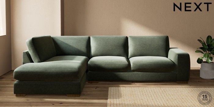 7.0.3 Buy Houghton Deep Sit Large Corner Chaise - Left Hand Luxe Chenille Mid Green Large Square Angle - Mid from the Next UK online shop Click here to use our accessible website