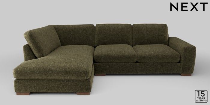 6.12.1 Buy Houghton Deep Sit Large Corner Chaise - Left Hand Plush Chenille Moss Green Large Square Angle - Mid from the Next UK online shop Click here to use our accessible website