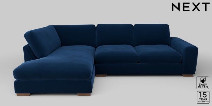 6.12.1 Buy Houghton Deep Sit Large Corner Chaise - Left Hand Plush Velvet Easy Clean Navy Blue Large Square Angle - Mid from the Next UK online shop Click here to use our accessible website