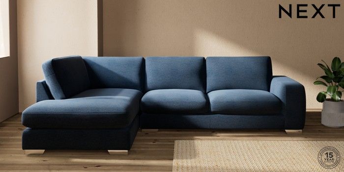 7.0.3 Buy Houghton Deep Sit Large Corner Chaise - Left Hand Ripple Chenille Dark Blue Large Square Angle - Chrome Metal from the Next UK online shop Click here to use our accessible website