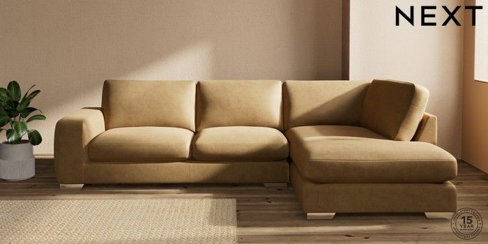 7.0.3 Buy Houghton Deep Sit Large Corner Chaise - Right Hand Luxe Chenille Honey Yellow Large Square Angle - Chrome Metal from the Next UK online shop Click here to use our accessible website