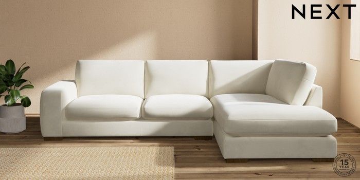 7.0.3 Buy Houghton Deep Sit Large Corner Chaise - Right Hand Luxe Chenille Oyster Large Square Angle - Mid from the Next UK online shop Click here to use our accessible website