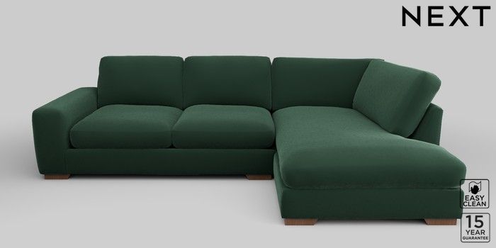 6.12.1 Buy Houghton Deep Sit Large Corner Chaise - Right Hand Plush Velvet Easy Clean Bottle Green Large Square Angle - Mid from the Next UK online shop Click here to use our accessible website