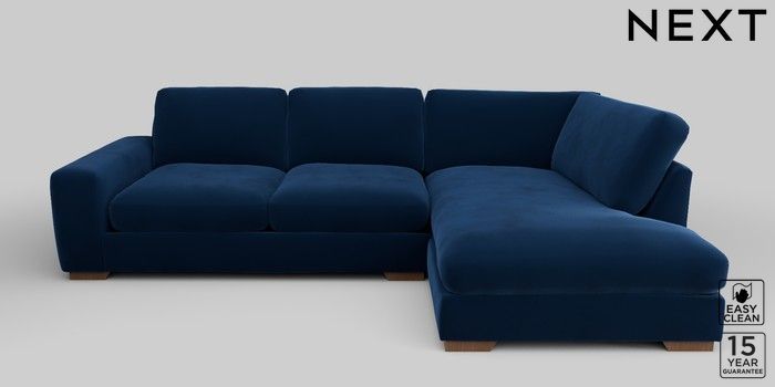 6.12.1 Buy Houghton Deep Sit Large Corner Chaise - Right Hand Plush Velvet Easy Clean Navy Blue Large Square Angle - Mid from the Next UK online shop Click here to use our accessible website