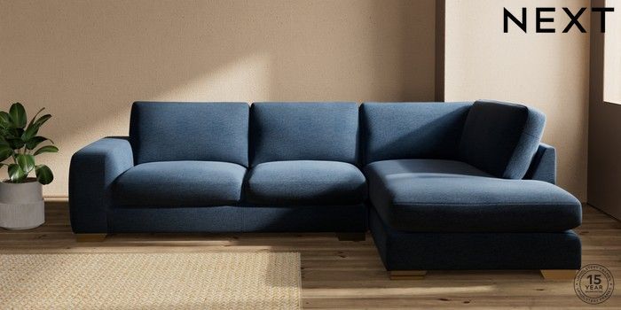 7.0.3 Buy Houghton Deep Sit Large Corner Chaise - Right Hand Ripple Chenille Dark Blue Large Square Angle - Brushed Brass from the Next UK online shop Click here to use our accessible website
