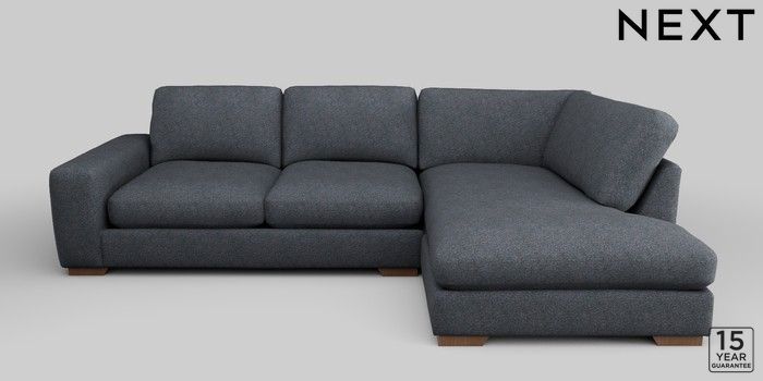 6.12.1 Buy Houghton Deep Sit Large Corner Chaise - Right Hand Tweedy Chenille Navy Blue Large Square Angle - Mid from the Next UK online shop Click here to use our accessible website