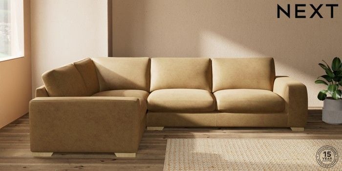 7.0.3 Buy Houghton Deep Sit Large Corner Sofa - Left Hand Luxe Chenille Honey Yellow Large Square Angle - Light from the Next UK online shop Click here to use our accessible website
