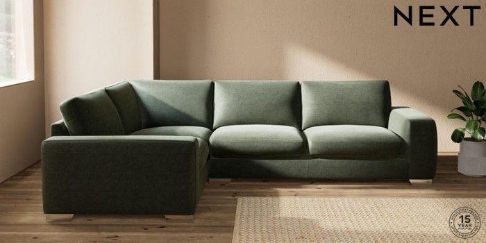 7.0.3 Buy Houghton Deep Sit Large Corner Sofa - Left Hand Luxe Chenille Mid Green Large Square Angle - Chrome Metal from the Next UK online shop Click here to use our accessible website