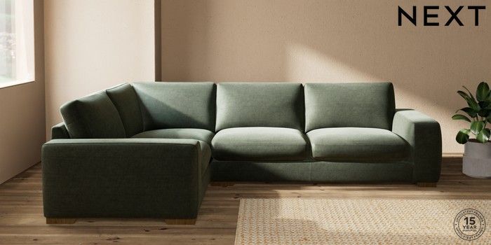 7.0.3 Buy Houghton Deep Sit Large Corner Sofa - Left Hand Luxe Chenille Mid Green Large Square Angle - Mid from the Next UK online shop Click here to use our accessible website