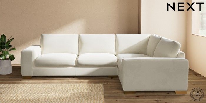 7.0.3 Buy Houghton Deep Sit Large Corner Sofa - Right Hand Luxe Chenille Oyster Large Square Angle - Brushed Brass from the Next UK online shop Click here to use our accessible website
