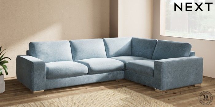 7.2.6 Buy Houghton Deep Sit Large Corner Sofa - Right Hand Plush Chenille Light Blue Large Square Angle - Chrome Metal from the Next UK online shop Click here to use our accessible website