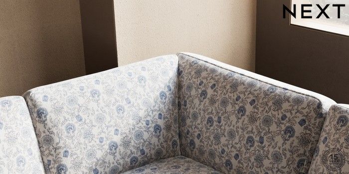 7.3.1 Buy Houghton Deep Sit Large Corner Sofa - Right Hand Relaxed Linen Look Print Woodblock Floral Blue Large Square Angle - Brushed Brass from the Next UK online shop Click here to use our accessible website