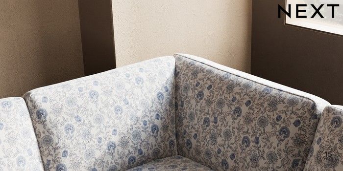 7.3.1 Buy Houghton Deep Sit Large Corner Sofa - Right Hand Relaxed Linen Look Print Woodblock Floral Blue Large Square Angle - Dark from the Next UK online shop Click here to use our accessible website