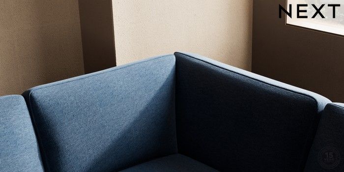 7.0.3 Buy Houghton Deep Sit Large Corner Sofa - Right Hand Ripple Chenille Dark Blue Large Square Angle - Chrome Metal from the Next UK online shop Click here to use our accessible website