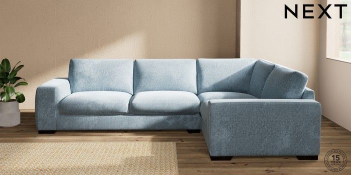 7.2.10 Buy Houghton Deep Sit Large Corner Sofa - Right Hand Plush Chenille Light Blue Large Square Angle - Dark from the Next UK online shop Click here to use our accessible website