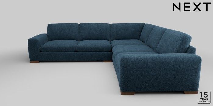 6.12.1 Buy Houghton Deep Sit Large Corner Sofa - Universal Cotswold Chenille Dark Blue Large Square Angle - Mid from the Next UK online shop Click here to use our accessible website