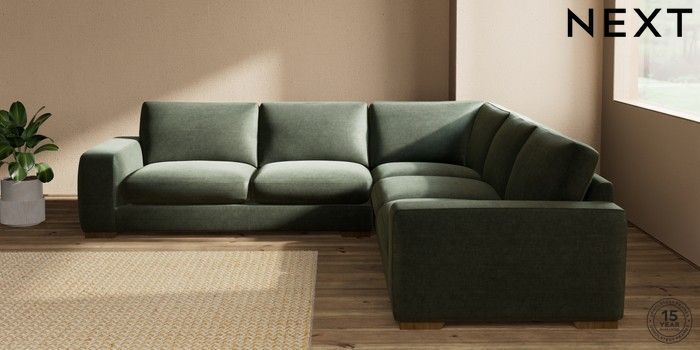 7.0.3 Buy Houghton Deep Sit Large Corner Sofa - Universal Luxe Chenille Mid Green Large Square Angle - Mid from the Next UK online shop Click here to use our accessible website
