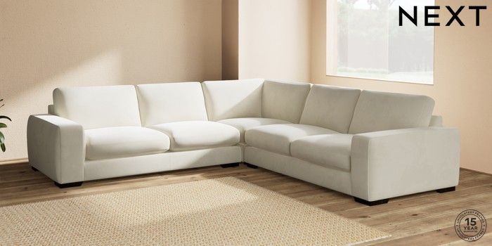 7.0.3 Buy Houghton Deep Sit Large Corner Sofa - Universal Luxe Chenille Oyster Large Square Angle - Dark from the Next UK online shop Click here to use our accessible website