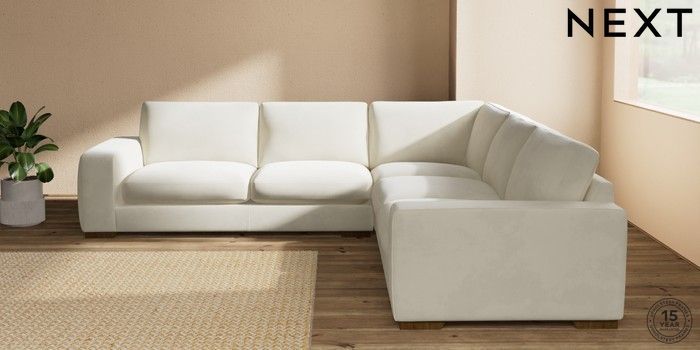 7.0.3 Buy Houghton Deep Sit Large Corner Sofa - Universal Luxe Chenille Oyster Large Square Angle - Mid from the Next UK online shop Click here to use our accessible website