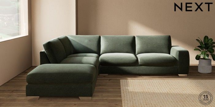 7.0.3 Buy Houghton Deep Sit Large Open End Corner Chaise - Left Hand Luxe Chenille Mid Green Large Square Angle - Chrome Metal from the Next UK online shop Click here to use our accessible website