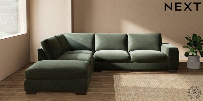 7.0.3 Buy Houghton Deep Sit Large Open End Corner Chaise - Left Hand Luxe Chenille Mid Green Large Square Angle - Gunmetal from the Next UK online shop Click here to use our accessible website