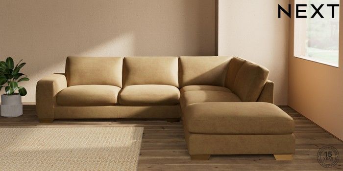 7.0.3 Buy Houghton Deep Sit Large Open End Corner Chaise - Right Hand Luxe Chenille Honey Yellow Large Square Angle - Brushed Brass from the Next UK online shop Click here to use our accessible website