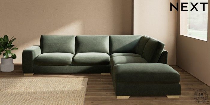 7.0.3 Buy Houghton Deep Sit Large Open End Corner Chaise - Right Hand Luxe Chenille Mid Green Large Square Angle - Light from the Next UK online shop Click here to use our accessible website
