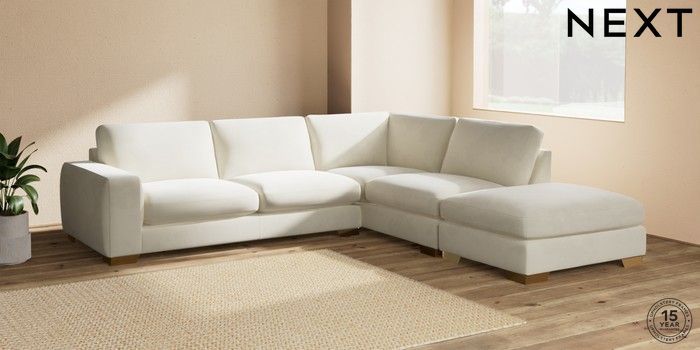 7.0.3 Buy Houghton Deep Sit Large Open End Corner Chaise - Right Hand Luxe Chenille Oyster Large Square Angle - Brushed Brass from the Next UK online shop Click here to use our accessible website