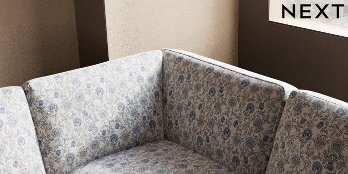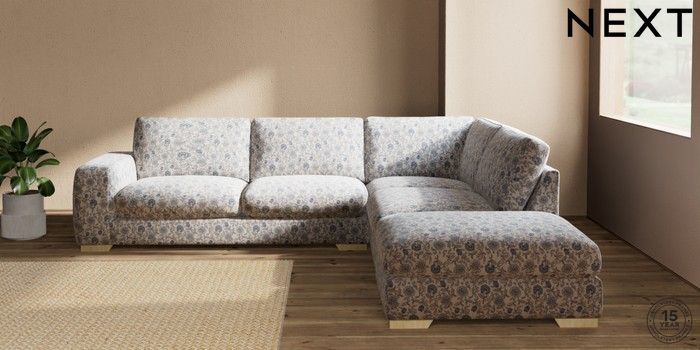 7.3.1 Buy Houghton Deep Sit Large Open End Corner Chaise - Right Hand Relaxed Linen Look Print Woodblock Floral Blue Large Square Angle - Light from the Next UK online shop Click here to use our accessible website