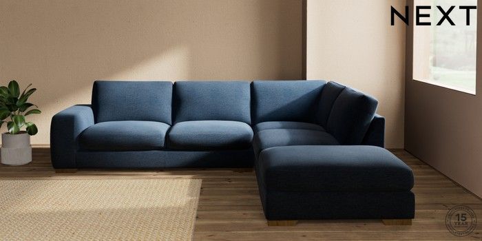 7.0.3 Buy Houghton Deep Sit Large Open End Corner Chaise - Right Hand Ripple Chenille Dark Blue Large Square Angle - Mid from the Next UK online shop Click here to use our accessible website