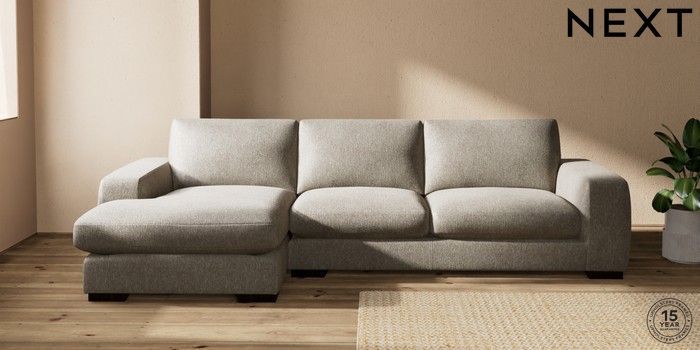 7.0.3 Buy Houghton Deep Sit Large Sofa Chaise - Left Hand Cotswold Chenille Mid Mink Brown Large Square Angle - Dark from the Next UK online shop Click here to use our accessible website