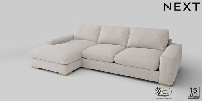 6.12.1 Buy Houghton Deep Sit Large Sofa Chaise - Left Hand Cotswold Chenille Oyster Large Square Angle - Brushed Brass from the Next UK online shop Click here to use our accessible website