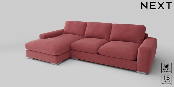 6.12.1 Buy Houghton Deep Sit Large Sofa Chaise - Left Hand Fine Chenille Easy Clean Mid Pink Large Square Angle - Chrome Metal from the Next UK online shop Click here to use our accessible website