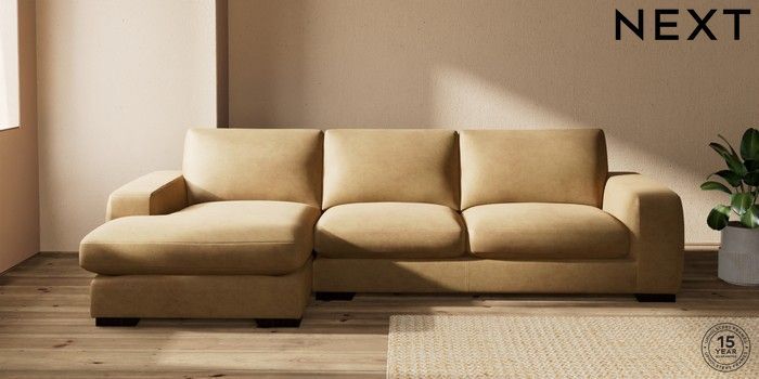 7.0.3 Buy Houghton Deep Sit Large Sofa Chaise - Left Hand Luxe Chenille Honey Yellow Large Square Angle - Dark from the Next UK online shop Click here to use our accessible website