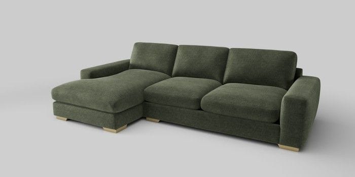6.12.1 Buy Houghton Deep Sit Large Sofa Chaise - Left Hand Luxe Chenille Mid Green Large Square Angle - Brushed Brass from the Next UK online shop Click here to use our accessible website