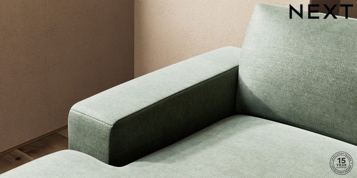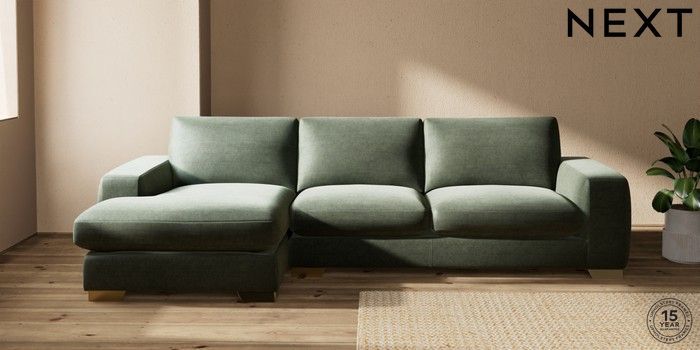 7.0.3 Buy Houghton Deep Sit Large Sofa Chaise - Left Hand Luxe Chenille Mid Green Large Square Angle - Brushed Brass from the Next UK online shop Click here to use our accessible website
