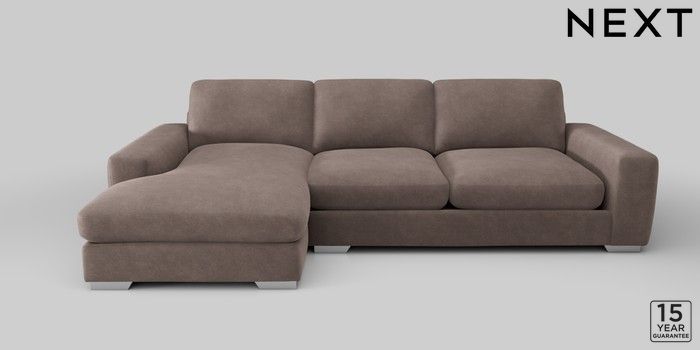 6.12.1 Buy Houghton Deep Sit Large Sofa Chaise - Left Hand Luxe Chenille Mink Brown Large Square Angle - Chrome Metal from the Next UK online shop Click here to use our accessible website