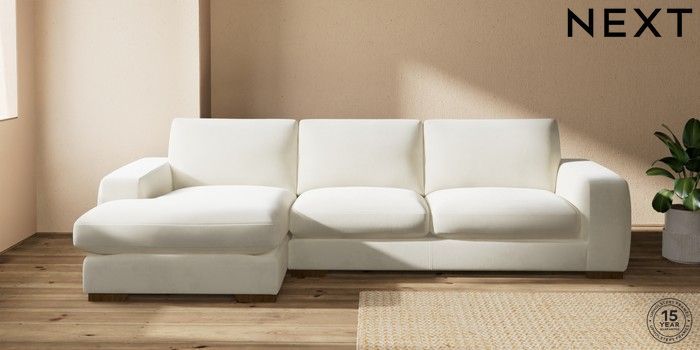 7.0.3 Buy Houghton Deep Sit Large Sofa Chaise - Left Hand Luxe Chenille Oyster Large Square Angle - Mid from the Next UK online shop Click here to use our accessible website