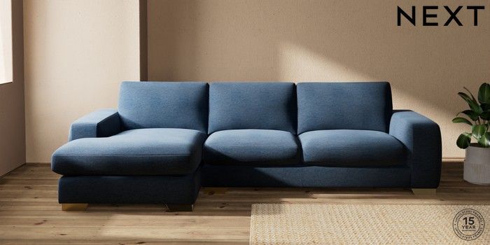 7.0.3 Buy Houghton Deep Sit Large Sofa Chaise - Left Hand Ripple Chenille Dark Blue Large Square Angle - Brushed Brass from the Next UK online shop Click here to use our accessible website